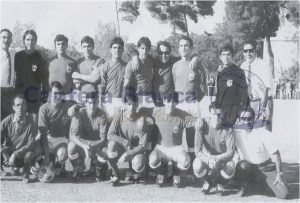 Arriba, Antonio Sánchez (delegado Juvenil C), Francisco Lacuesta Salazar (entrenador del Juvenil C), x, x, TROCOLÍ (José Trocolí Pérez), x, BARBA (Antonio Barba Rodríguez), ARÉVALO (López Arévalo), x, BARRIOS, SALMERÓN (Joaquín Salmerón Vicente), ESPADA (Juan José Espada Luciano), x, Mariano Matías (delegado del Juvenil B), José Antonio Segura López (entrenador del Juvenil B)