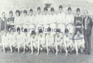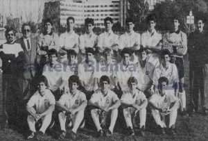 Arriba, José Luis Rodríguez Laborda (entrenador), MARTÍN-DELGADO (José Manuel Martín-Delgado Fernández-Cabrera), BALLESTER (Carlos David Ballester Ménguez), MARTÍN CRIADO (José Miguel Martín Criado), HERRERO (Felipe Herrero Baeza), GONZÁLEZ (Miguel Ángel González Alba), AMORÓS (Juan Antonio Amorós Meca), VAQUERO (Ernesto Vaquero Jiménez), DÍAZ MOYA (Miguel Ángel Díaz Moya), ALGAR (Julio Algar Pérez-Castilla), GARCÍA RENEDO (Raúl García Renedo), Sr. Manuel San José Calvo (delegado)