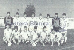 De pie, MARTÍN-DELGADO (José Manuel Martín-Delgado Fernández-Cabrera), DÍAZ JURADO (Antonio Díaz Jurado), SANZ (Vicente Sanz Barcía), ALONSO (Javier Alonso Fraile), ALBA (Miguel Ángel González Alba), CANO (Carlos David Cano Marín), HERRERO (Felipe Herrero Baeza), ÚGALDEA (Antonio Martín Úgaldea)