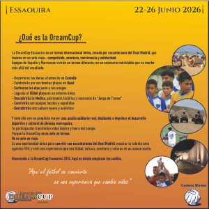 La DreamCup Essaouira 2026 es mucho más que un torneo internacional de fútbol base. Es una experiencia transformadora creada por ex canteranos del Real Madrid que creen en el fútbol como herramienta educativa, cultural y solidaria.
