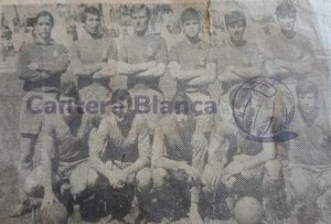 Arriba, SESMA (José Luis Sesma Moreno), MEGÍAS (Ángel Megías), NOGAL (Jesús Nogal de la Cruz), Sr. Francisco Lacuesta Salazar (entrenador), IBÁÑEZ (Fernando Ibáñez Contreras), HUETE (Félix Huete), MENDOZA (Manuel Mendoza Becerra)