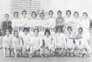 Arriba, Sr. José Antonio Grande Cereijo (segundo entrenador), JUANITO (Juan Antonio Felipe Gallego), BERNARDO (Alberto Ricardo Bernardo Murcia), PANTOJA (Antonio Pantoja Castañeda), FRANCIS (Francisco Javier Rodríguez Hernández), OCHOTORENA (José Manuel Ochotorena Santacruz), CASIMIRO (Casimiro Torres Ibáñez), PACO (Francisco Machín Fernández de la Puente), ESPINOSA (José Manuel Espinosa Gómez), MIGUEL (Miguel Recio Moya), Sr. Juan Santisteban Troyano (Entrenador)