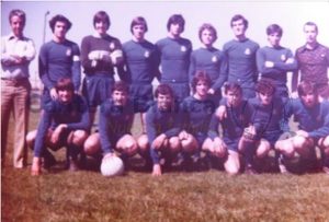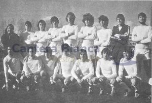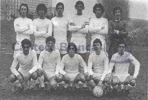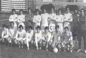 De pie, Sr. Rafael Guillén Cuesta (entrenador), AGUIRRE (Antonio María Aguirre Osteriz), ALONSO (Francisco Javier Alonso Muñoz), CASTRO (José Luis Castro Mármol), LUIS (Luis Cob Sierra), MATEOS (Tomás Octavio Mateos Santana), OCHOTORENA (José Manuel Ochotorena Santacruz), BENÍTEZ (Rafael Benítez Maudes), ROBLES (Vicente Robles Jiménez), LÓPEZ PÉREZ (José Alberto López Pérez).