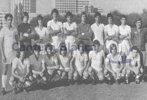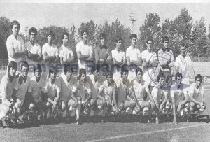 De pie, JUANITO (Juan Antonio Felipe Gallego), OCHOTORENA (José Manuel Ochotorena Santacruz), GARCIA (Gregorio García Fernández), COSTA (Josep Costa Moix), HURTADO (Francisco Hurtado Soler), GÓMEZ (Jesús Eloy Gómez de las Heras), PÉREZ DURÁN (Francisco Pérez Durán), PLATAS (Juan José Platas García), BERNARDO (Alberto Ricardo Bernardo Murcia), Sr. Rafael Guillén Cuesta (entrenador).
