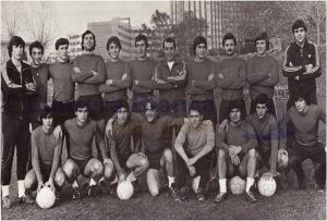 De pie, Sr. Rafael Guillén Cuesta (entrenador), GARCÍA (Gregorio García Fernández), MARTÍN MADRAZO (Miguel Ángel Martín Madrazo), PÉREZ DURÁN (Francisco Pérez Durán), COSTA (Josep Costa Moix), HURTADO (Francisco Hurtado Soler), PLATAS (Juan José Platas García), OCHOTORENA (José Manuel Ochotorena Santacruz), MÁRMOL (José Luis Mármol Maroto).