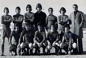 De pie, JUANITO (Juan Antonio Felipe Gallego), OCHOTORENA (José Manuel Ochotorena Santacruz), GARCIA (Gregorio García Fernández), COSTA (Josep Costa Moix), HURTADO (Francisco Hurtado Soler), GÓMEZ (Jesús Eloy Gómez de las Heras), PÉREZ DURÁN (Francisco Pérez Durán), PLATAS (Juan José Platas García), BERNARDO (Alberto Ricardo Bernardo Murcia), Sr. Rafael Guillén Cuesta (entrenador).