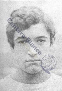 De pie, GÓMEZ (Javier Gómez Santorcaz), SANTIAGO (Santiago Blanco ******), TORRES (José Torres Rodríguez), CID (Juan Carlos Cid González), Sr. Juan Luis Hernández-Fuertes (Entrenador), ALGUACIL (Juan Alguacil Amate), MARTÍN (Miguel Ángel Martín Madrazo), MUÑOZ (Juan Muñoz Leo), GUZMÁN (Bartolomé Guzmán Nevado)