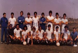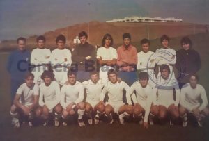 Agachados, Sr. Rafael Guillén Cuesta (entrenador), ALGUACIL (Juan Alguacil Amate), MADERO (Francisco Antonio Madero Jiménez), ORTIZ (Francisco Ortiz Márquez), LÓPEZ MIRÓ (Gregorio López Miró), CID (Juan Carlos Cid González), BERNARDO (Alberto Ricardo Bernardo Murcia), HURTADO (Francisco Hurtado Soler), Sr. Juan Paredes Jr. (utillero).