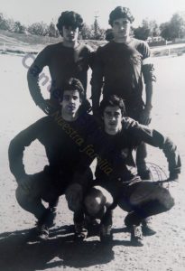 Agachados, ROMÁN (Eduardo Román del Cerro), CARDENAL (Jose Luis Cardenal Marcos), SÁNCHEZ RUIZ (José Sánchez Ruiz), HURTADO (Francisco Hurtado Soler), SÁNCHEZ IBAÑÉZ (Dionisio Sánchez Ibañéz), MICHELIS (Javier Michelis Causín), ARJONA (Narciso Arjona Camacho)