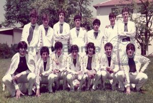 Arriba, MARTÍNEZ (José Martínez García), SABINA (Ángel Luis Sabina Campos), ARAGÓN I (Ramón Aragón Segura), CÉSAR (César Gómez del Rey), PÉREZ HURTADO (Luis Pérez Hurtado), ARIZA (Juan Luis Ariza Rodríguez), TOMÁS (Tomás García Sánchez), ARAGÓN II (Santiago Aragón Martínez), FREIRE (Joaquín Sánchez Freire), PERAILE (José Antonio Peraile Tinaut), Sr. Francisco Alonso Fernández (entrenador), Sr. Jesús Osma (A.T.S.)