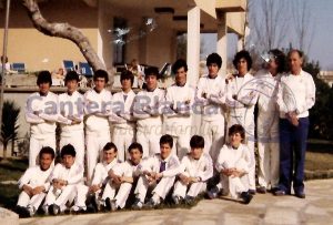 De pie, RODA (Antonio Ignacio Roda Melgar), ARIZA (Juan Luis Ariza Rodríguez), MIANA (Francisco Javier Miana Ortega), TOMÁS (Tomás García Sánchez), GARCÍA MORENO (Jesús García Moreno), LÓPEZ MARTÍN (Juan Carlos López Martín), BLÁZQUEZ (Julio Blázquez Velázquez de Castro), DIMANUEL (José Luis Dimanuel Garrido)