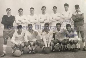 De pie, DOMÍNGUEZ (Alejandro Domínguez Rojo), DE LA FUENTE (Carlos de la Fuente López), SÁNCHEZ RUBIO (Luis Sánchez Rubio), ÁLVAREZ (Antonio Álvarez Ávila), MONTERO (Juan Manuel Montero López), MENDOZA (Manuel Mendoza Becerra), ESTEBAN (Juan A. Esteban) (p.s.)