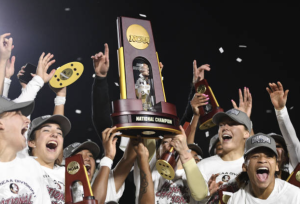 Celebración NCAA (campeonas con trofeo)