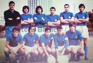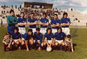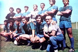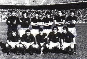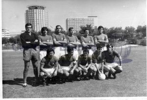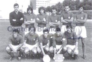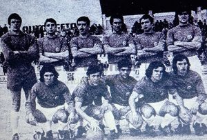 Arriba, ACEDO (José María Acedo Ramos), MACUA (Juan Emilio Castellanos Macua), RUÍZ (José Mariano Ruíz Sánchez); Antonio Ruiz Cervilla (entrenador), MINGO (Luis Mariano Mingo Fernández), CRUZ (Luis Cruz Benito), J. GONZÁLEZ (Antonio José González Gómez)