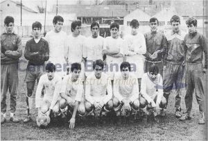 Arriba, NAVARRO, FELICES (Ricardo Felices), MENDOZA (Manuel Mendoza Becerra) (jugador del Juvenil «A»), IBÁÑEZ (Fernando Ibáñez Contreras) (jugador del Juvenil «A»), ORTEGA (Antolín Ortega García) (jugador del Juvenil «A»), JIMÉNEZ DÍAZ (José Luis Jiménez Díaz), ÁLVAREZ (José Antonio Álvarez Domínguez) (jugador del Juvenil «A»), LÓPEZ BOTELLA (Manuel López Botella), VALLEJO (Enrique Vallejo Muñoz), JIMÉNEZ SÁNCHEZ.