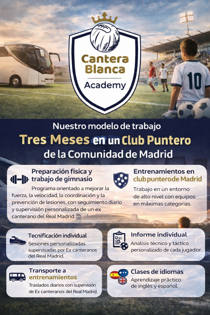 El Programa de 3 Meses de Cantera Blanca Academy ofrece una experiencia intensiva pensada para futbolistas que quieren dar un paso adelante en su desarrollo dentro de un entorno de alto rendimiento.